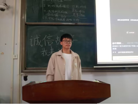 庄子曾说“诚者,天之道也;诚之者,人之道也。”诚信不仅是一种品行,也是一份难能可贵的珍宝。在分享会上,主讲人向同学们阐述了自己对于诚信的见解并向同学们分享了一些生活中有关诚信的视频,展示诚信在生活中的重要性。同学们认真听讲,仔细品味诚信故事,增强了对诚信知识的理解和认识。