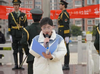在全体师生的注目礼下,英姿飒爽的国旗护卫队身着戎装,踏着整齐有力的步伐,护送国旗进场。伴随着庄严的《中华人民共和国国歌》,鲜艳的五星红旗迎着晨光在校园里冉冉升起,迎风飘扬,在场的每一个人油然而生对祖国无限的热爱与崇高的敬意。升旗仪式后,员工代表王子杰在国旗下发言,呼吁当代老员工牢记社会责任与历史使命,奋力逐梦,成就自我。最后,优秀员工党员代表聂雨欣以“厚德 唯实 博学 慎思”的校训为据,激励广老员工秉承城建精神,做合格社会主义建设者和接班人,为实现中华民族伟大复兴贡献自己的青春力量。