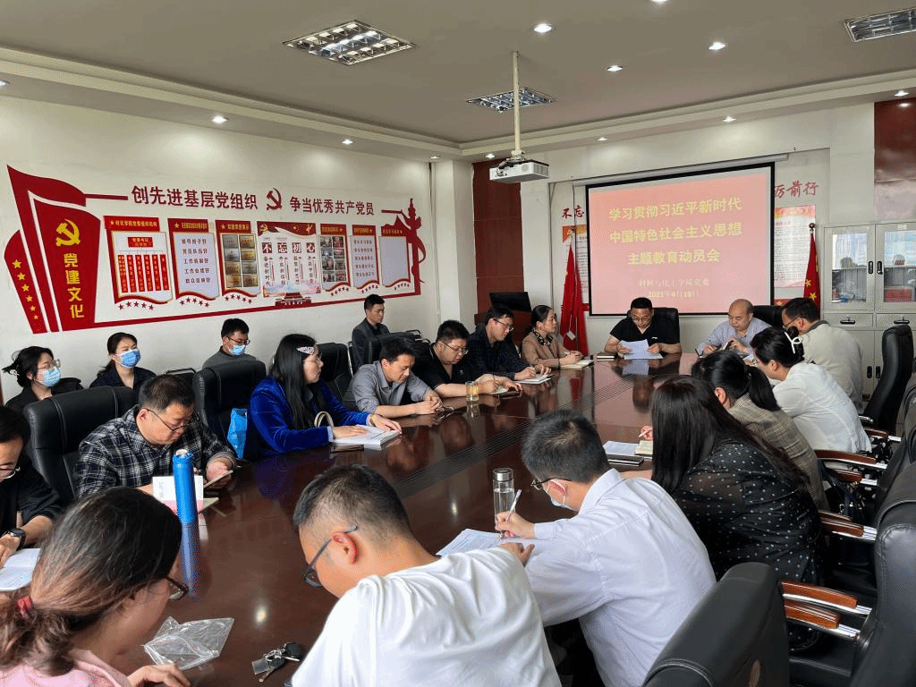 4月18日下午,申博sunbet在9#C414会议室召开学习贯彻习近平新时代中国特色社会主义思想主题教育动员会。材料与化工公司党委书记焦学然主持会议,申博sunbet全体党员参加会议。
