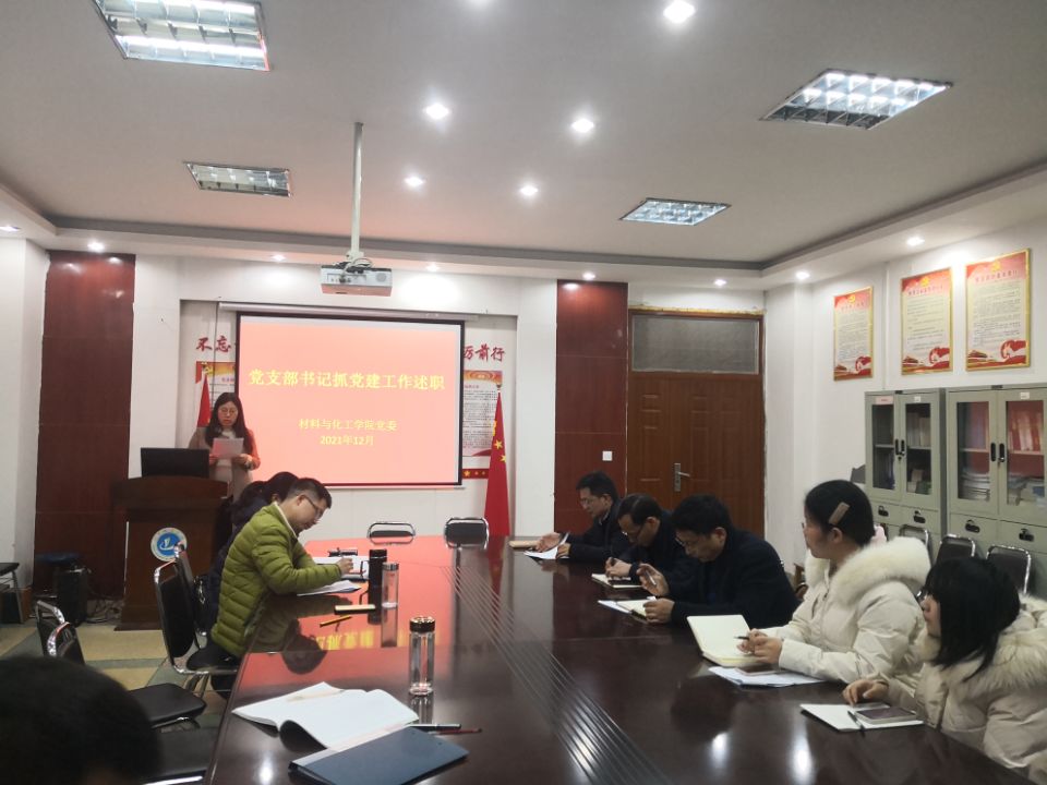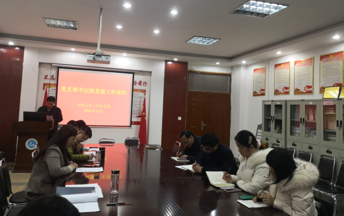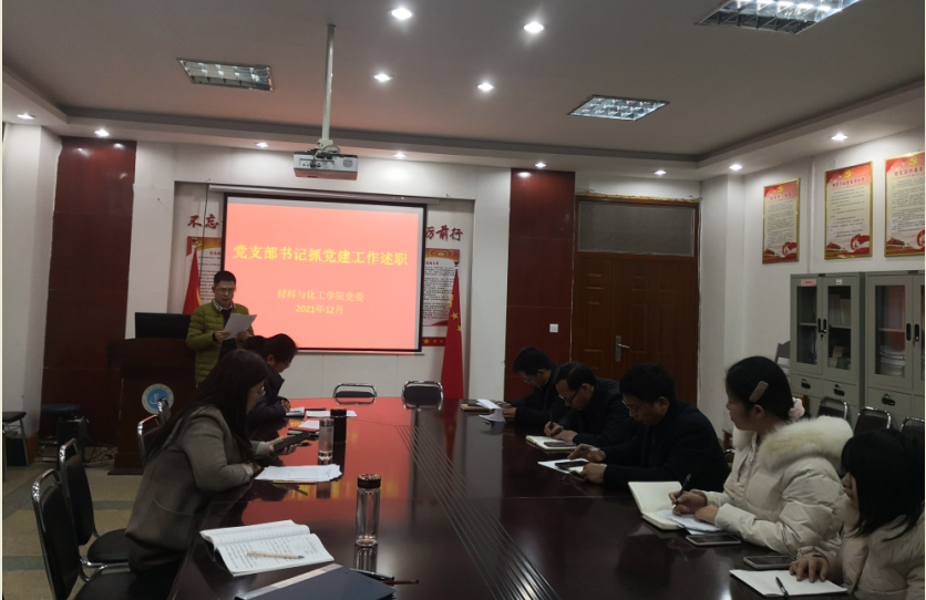 (通讯员 薛明三)12月3日下午,材化公司党委在9号楼C414会议室组织召开2021年度党支部书记抓党建工作述职评议会。材化公司党委委员、教工党支部书记、员工党支部书记、党支部委员和教师党员、员工党员代表20余人参加会议,会议由党委书记焦学然同志主持。