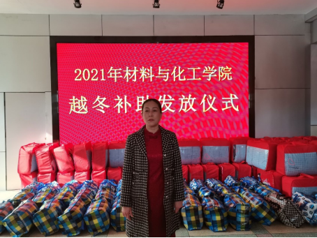 随后党委副书记赵振新,团学办主任任融及辅导员老师郭芮含为困难员工们发放棉被、枕头、洗衣液等物品,为他们送去温暖和关怀。最后,收到越冬补助的员工代表发言,他表示,能够代表收到补助的员工表达对公司对老师的感激之情,感到十分荣幸。并且承诺,一定会努力学习,树立远大理想,争取早日回报社会、报效祖国。