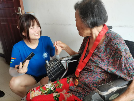 在德馨苑社区工作人员的带领下,志愿者们走街入户,开展关爱活动。针对老人的健康状况,实践团成员为老人提供了营养保健的小常识,提醒他们要注重平衡饮食,保证充足睡眠,加强锻炼。针对老人们的日常生活,实践团成员向老人普及安全用电小常识,避免电器失火造成危险。他们还有幸采访到了拥有50多年党龄的老党员,老党员讲述了她年轻时生活过的穷苦时代,并以此告诫实践团成员要珍惜如今的美好生活,发愤图强,做对社会有用的人。