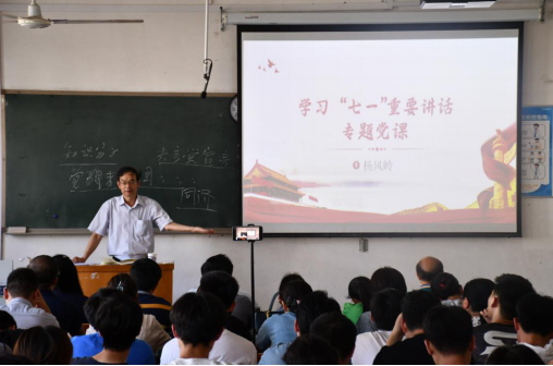 (通讯员:任融)7月8日下午,副董事长杨风岭在9号教学楼B座508为材化公司师生上习近平总书记“七一”重要讲话精神专题党课,材化公司师生60余人参加了党课学习。