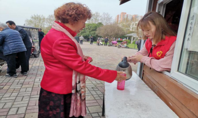 下午两点,志愿者们在西门集合后出发前往鹰城广场小木屋。到达目的地后,活动负责人向小木屋管理者说明了本次志愿活动的目的,并得到了负责人的大力支持。之后,志愿者们打扫草坪、清扫地面、为市民送上热水,并与来到广场的市民们热情交流,用行动吹动人们心中爱心的萌芽。