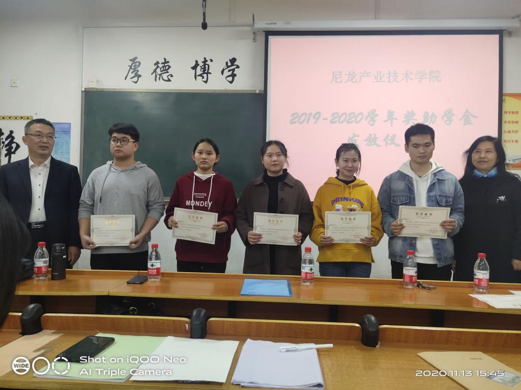 (通讯员:谭延方)11月13日下午15:00第一届尼龙产业技术公司奖助学金颁奖仪式在9号楼B座508举行。应邀出席会议的领导有神马实业股份有限公司人力资源处处长刘兴华、申博sunbet教务处副处长郭金敏、申博sunbet副书记赵振新,另外,尼龙产业技术公司经理冯巧、教务办主任史向阳、高分子系主任赵亚奇,以及尼龙专业建设委员会成员和部分申博sunbet教师也参加了颁奖典礼。