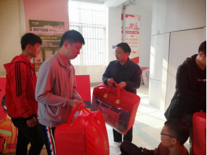 仪式伊始,党总支副书记赵振新代表申博sunbet向困难员工表示慰问和关怀,并鼓励同学们要自立自强,以优异的成绩完成大学学业。随后,经理赵海鹏、党总支书记焦学然、党总支副书记赵振新及辅导员们亲自将越冬物资发放到同学们手中,物资包括棉被、床单、被罩、手套、棉鞋、洗衣液、卫生纸等,使员工感受到了公司带来的温暖。仪式最后,党总支书记焦学然还嘱咐同学们要常怀感恩之心,把国家对大家的关爱传递下去,传播正能量。