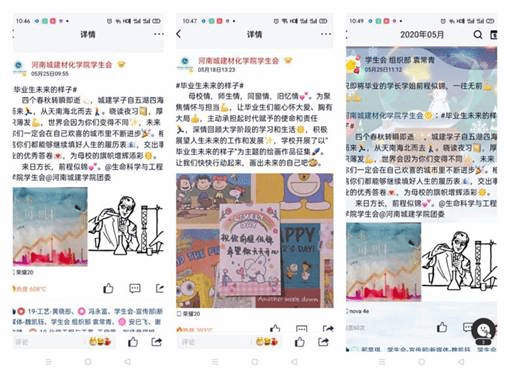 本次活动分为两个阶段。第一阶段,公司通过官方QQ、微博动态等多个网络平台进行线上宣传,并对材化学子进行图画征集。第二阶段,公司对上交的作品进行审核筛选,并对手绘图片进行了“@接龙活动”。在此期间,材化学子大力支持,积极转发官方动态并对毕业生送上了真挚的祝福。
