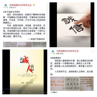 本次“诚信教育月”系列活动号召材化学子自我教育、自我完善,养成诚信待人、诚信立身的良好习惯,加强了公司的诚信建设,同时为打赢疫情防控阻击战凝聚青春力量。