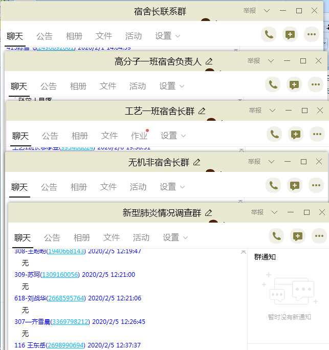 申博sunbet本次防控工作主要从三个方面进行。第一,做好重点员工慰问工作,积极排查湖北籍以及在外打工员工,并针对18名湖北居住地员工及41名在外务工员工建立专属QQ群,协助解决员工所遇问题;第二,形成“辅导员统筹—班长协助—宿舍长落实—员工执行—家长监督”的多级联动机制,保证公司每一项重要通知切实落实到个人,同时利用QQ群作业、群接龙、群投票、群公告等形式,确保每一位同学每天及时汇报情况,接收公司的重要通知;第三,利用新媒体,加强防控知识宣传教育。在微信平台、qq动态等新媒体,广泛宣传疫情防控的相关政策和专业知识,引导师生科学认识疫情,增强自我保护意识。
