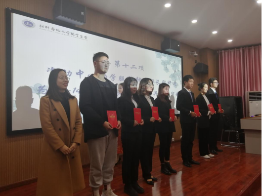 员工资助中心助学服务部副部长张妍迪为8--14号宿舍长代表颁奖