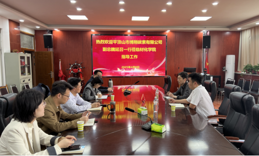 4月8日,河平顶山市博翔碳素有限公司副总魏延召一行莅临材化公司考察指导,双方就产学研合作、人才培养、技术攻关等议题展开深入交流。材化公司经理冯巧、副经理胡继勇和相关教师出席座谈交流。